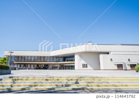 「青森県」快晴の青空と八戸市公会堂の風景