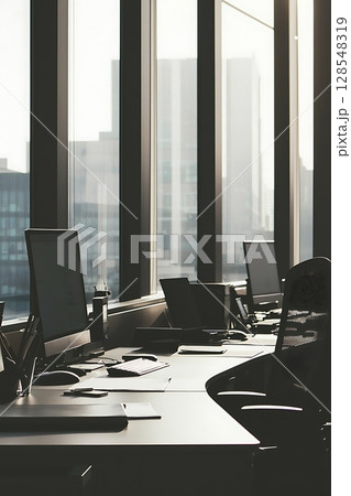Spacious, bright office with panoramic windows - AI generated image