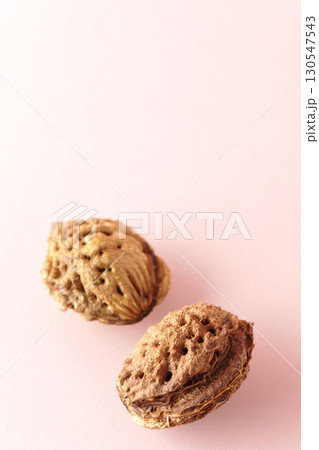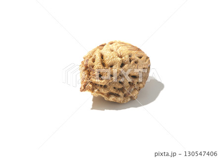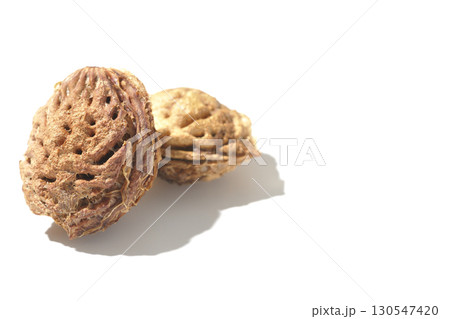割れた桃の種を白背景で撮影