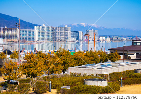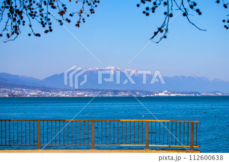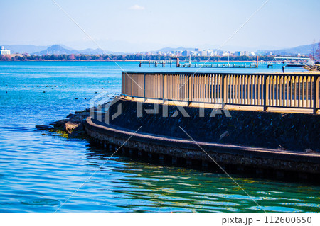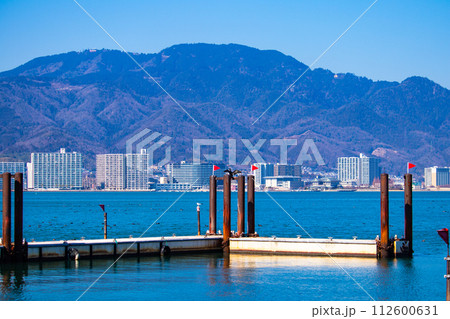 【びわ湖風景】湖畔から眺める冬山や沖合の風景