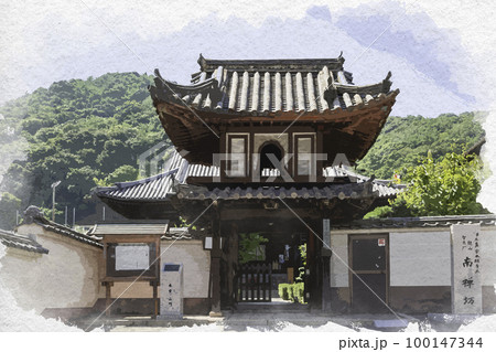 水彩画風 鞆の浦 南禅坊 広島県福山市