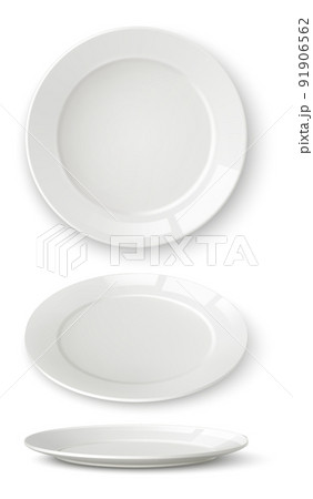 White plate set. Realistic table dish mockup