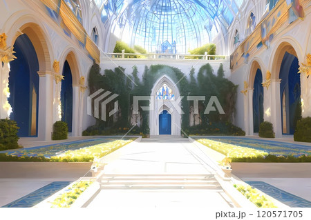 RPGファンタジーゲーム背景 異世界神殿回廊ホール
