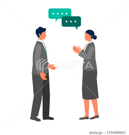 女性社員と男性社員の円滑なビジネスコミュニケーションイラスト