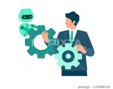 AIと協働するビジネスマンのイラスト 業務を円滑に進めるパートナー表現