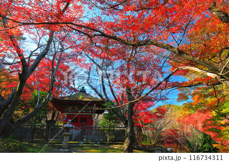 【滋賀県】晴天の三井寺(園城寺)の毘沙門堂の紅葉