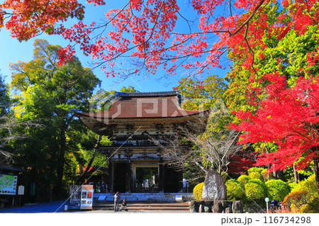 【滋賀県】晴天の三井寺(園城寺)の仁王門と紅葉