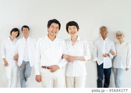 光の中で寄り添う老夫婦 シニアカップル 高齢者カップル