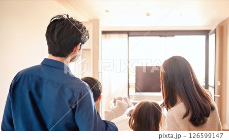 マンションを内覧する家族の後姿,generative ai_ワイド