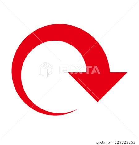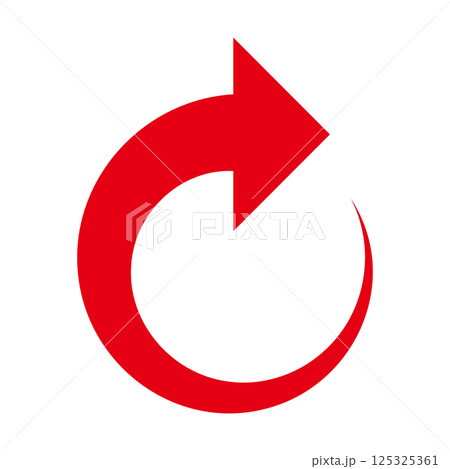 くるっとカーブしたシンプルな赤い矢印 白背景