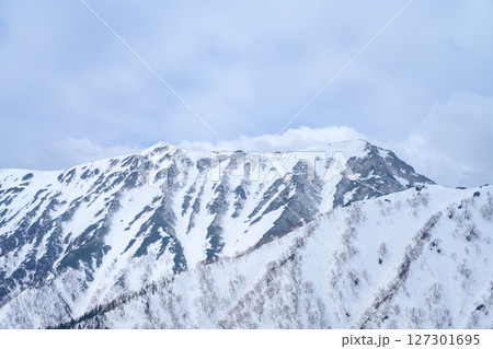 丹沢・鍋割山稜から望む春の鍋割山と富士山