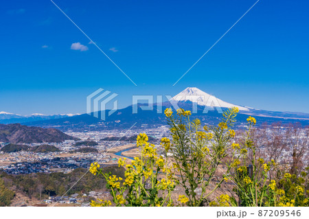 (静岡県)菜の花咲く、伊豆田方地区から眺める、富士山