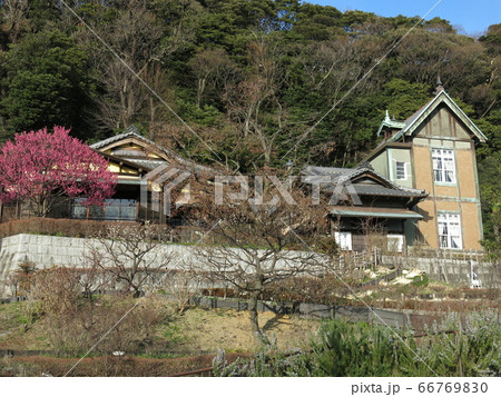 梅が咲く早春の根岸なつかし公園 旧柳下邸