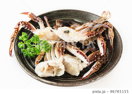 白い器に盛った渡り蟹