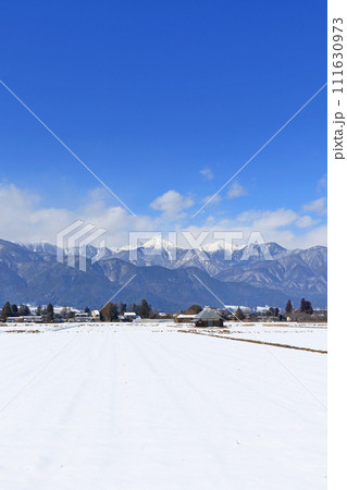 冬の安曇野 田園と北アルプス