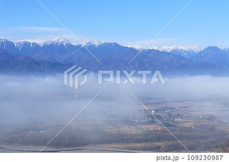 朝霧の安曇野と初冬の北アルプス