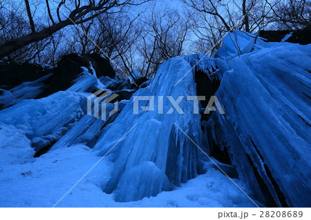 青森県十和田 奥入瀬渓流 馬門岩の氷柱