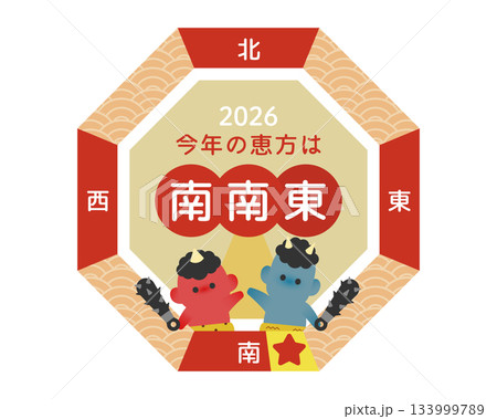 節分・2026年の恵方(南南東)を示す恵方図3色バリエーションセット(鬼イラスト)