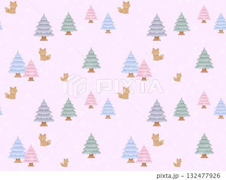 キツネと雪のシームレスパターン E-3'