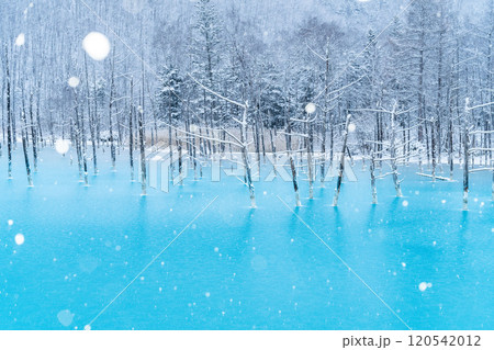 北海道美瑛青い池の雪景色