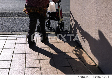 日本の東京都市景観年末。高齢化社会。高齢の女性…冬の長い影は…人生は=29日、横浜市内で