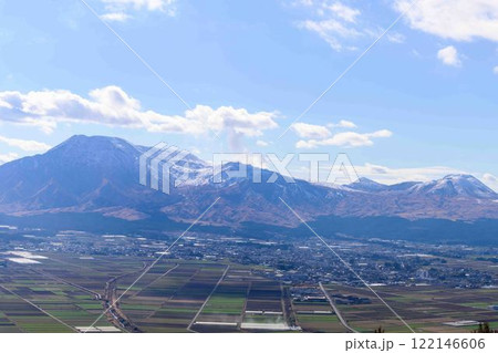 雪景色の阿蘇五岳パノラマ風景 (城山展望台)阿蘇市