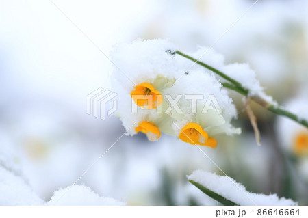 雪をかぶった日本水仙(ニホンズイセン)