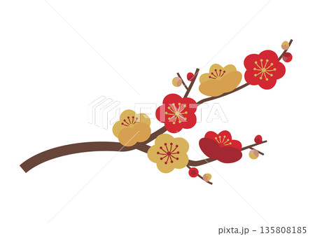 梅の花枝_赤・金