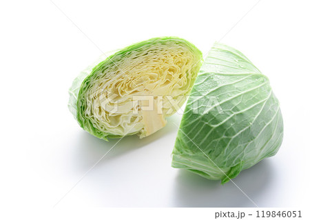 新鮮なキャベツ カットイメージ ( 白背景 )