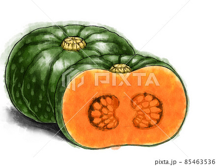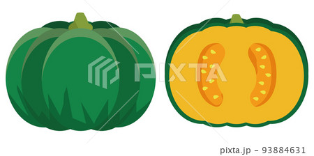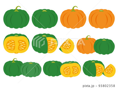 かぼちゃのイラスト素材セット_丸ごとと断面