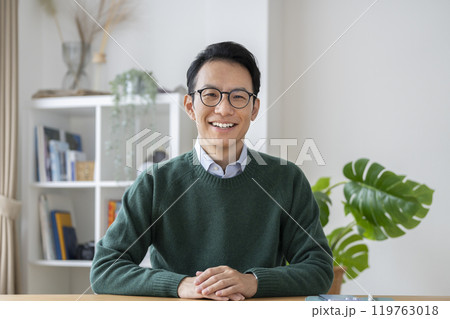 カメラ目線で微笑む30代前半の男性 ポートレート