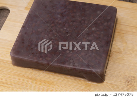 夏の和菓子水羊羹を切る