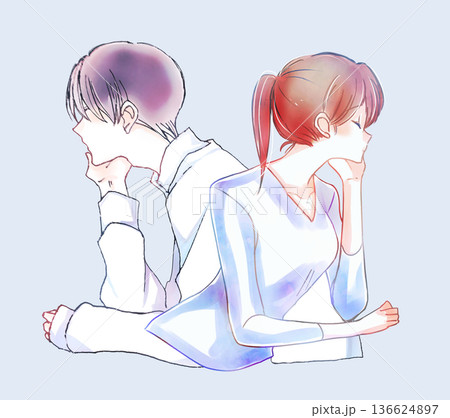 背中合わせの頬杖をつく男女