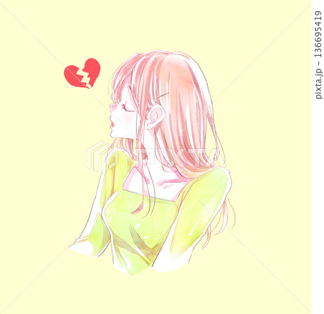 目を閉じている女性 横顔 割れたハート