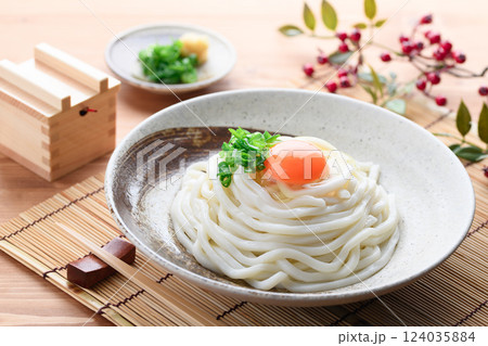 夏の冷たい麺料理、冷やしたぬきうどん、冷やしうどん、ぶっかけうどん、冷やしタヌキウドン。
