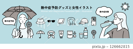 熱中症予防グッズと女性イラスト
