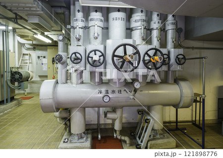 地下に設置された冷温水装置 撮影協力:学校法人電波学園 東京電子専門学校