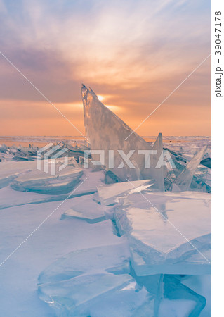 An ice formation such as Ice spike and Icicle forming in a temperature below 0 in lake Baikal, Russia. The water in Lake Baikal freezes in bizarre shapes in winter season.