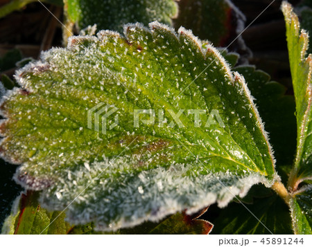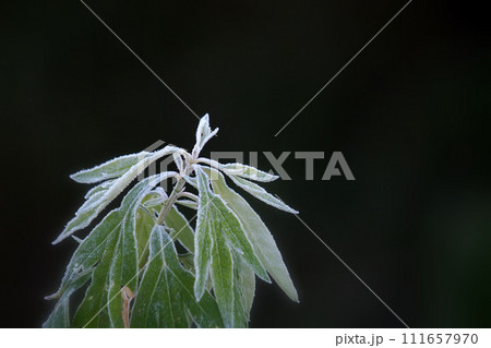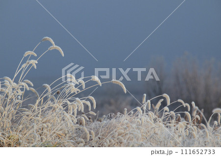 霜が付いた草 植物 寒い 冬の朝