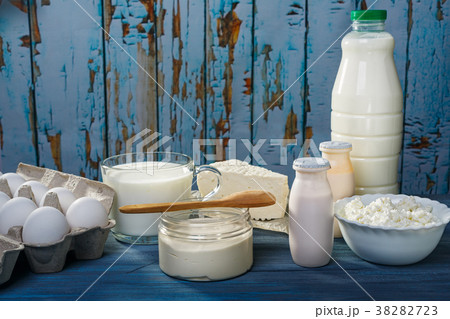 Dairy products on a blue table