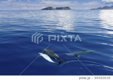 凪の海を泳ぐハシナガイルカの群れ