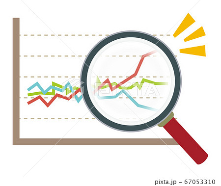 虫眼鏡でグラフを拡大するベクターイラスト ルーペのアイコン 矢印 株価上昇 景気