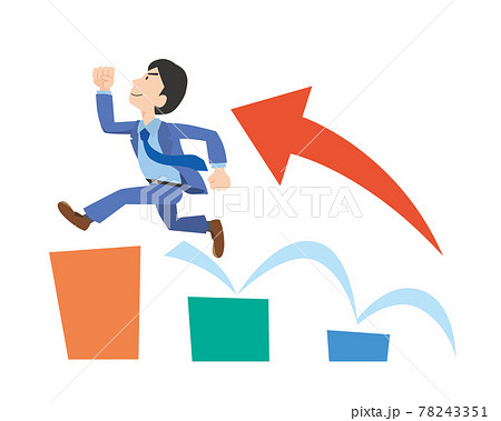 急ぐ、走る階段を上る8等身白人男性のビジネスマンのアバター インフォグラフィックス出世成功