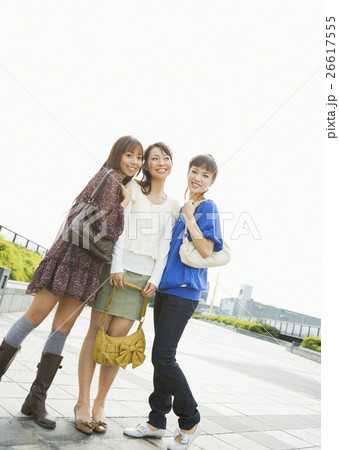電車に乗るパーカーを着た女性のセット