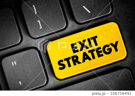 Exit Strategy - means of leaving one's current situation, either after a predetermined objective has been achieved, text concept button on keyboard
