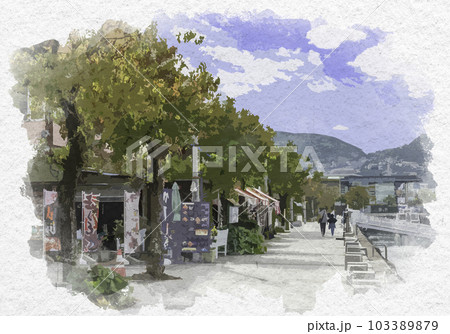 水彩画風 長崎 出島ワーフ 長崎県長崎市