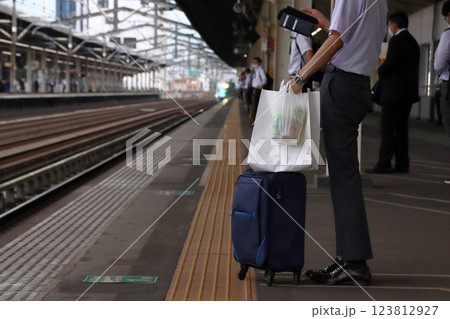 東北新幹線に乗降するサラリーマン