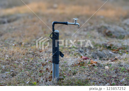 薬師池公園の花畑にある散水用水道の蛇口