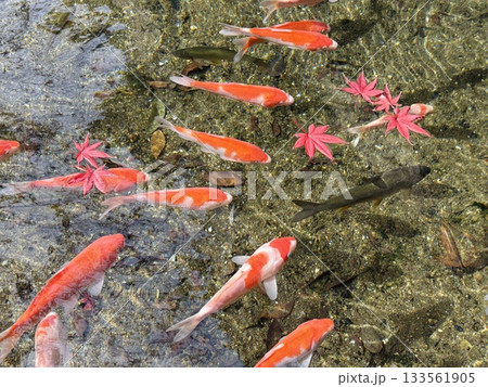 出流原弁天池_紅葉と鯉_ 日本名水百選_ 栃木県の天然記念物