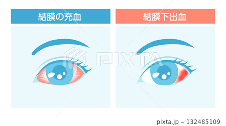 結膜下出血と結膜の充血 比較ベクターイラスト